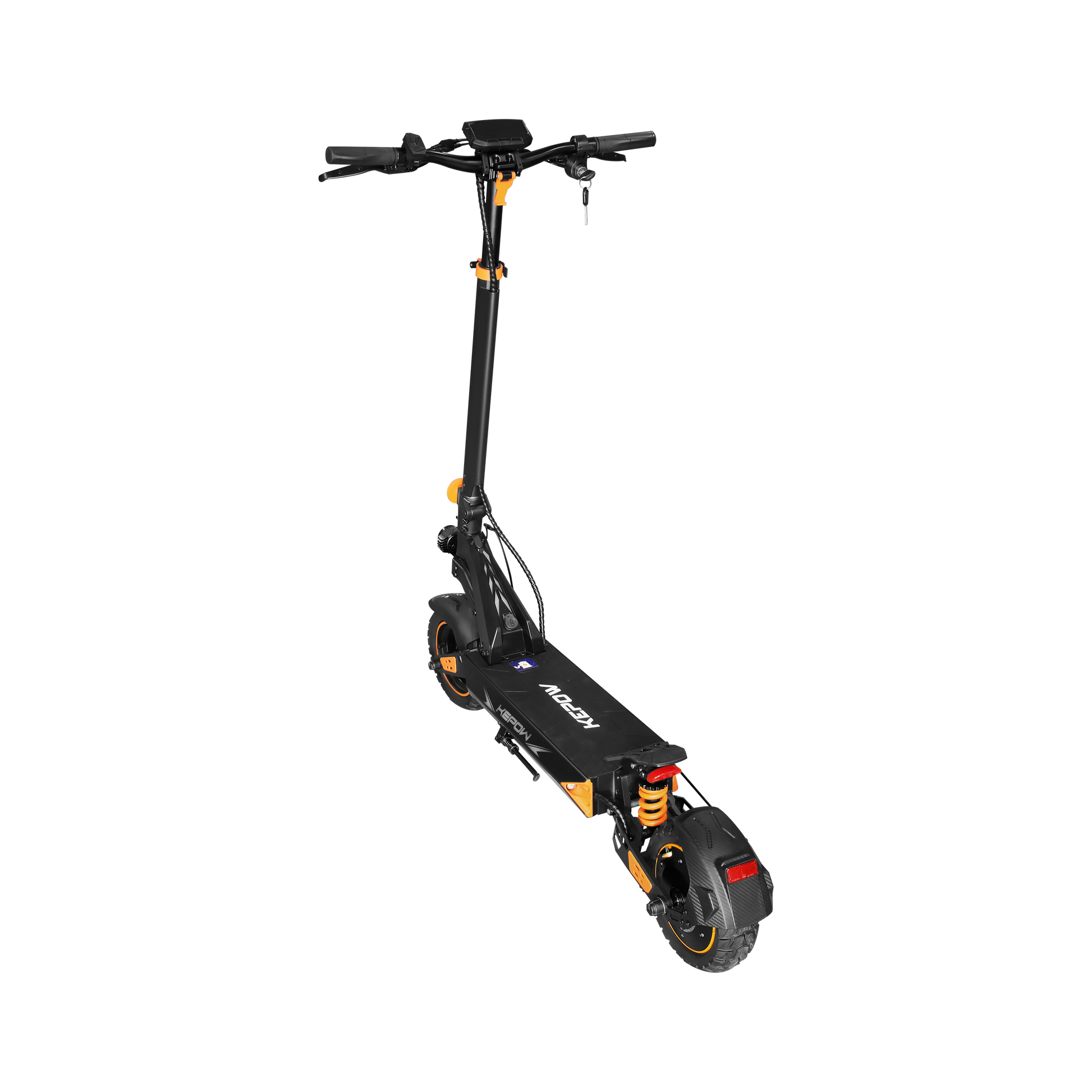 Reaches a max speed of 50KM/H (after speed limit removal) and offers 4 riding modes—Pedestrian (6KM/H), Eco (15KM/H), Standard (20KM/H), and Sport (25KM/H)—to suit every scenario. The intuitive handlebar controls let you adjust speed, toggle the headlight, switch between KM/H and MPH, and sound the horn with ease, putting full control at your fingertips.